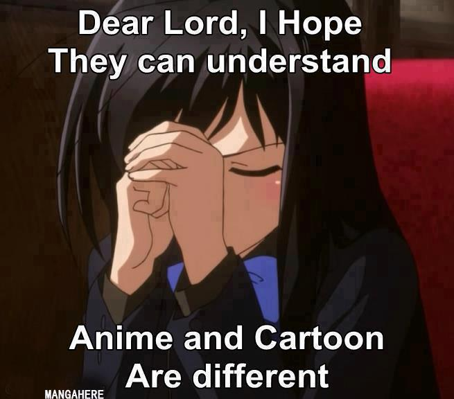 I think he is right about the part in Anime the character like goes on with different difficulties to face while Cartoons you can easily predict the next episode here goes again the bad guy on and on about the same scene. Now I wonder why I easily get sleepy from watching Cartoon marathons.